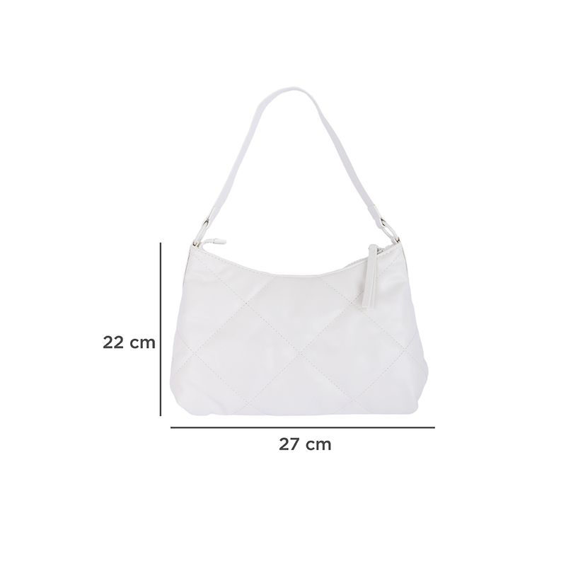 ¡Miniso tiene para ti este lindo bolso de hombro! Te otorga un diseño minimalista en tonalidad blanco con detalles punteados y de marca a tono, compartimento de cierre y correa suave ¡Conviértelo en el accesorio perfecto para tu guardarropas!